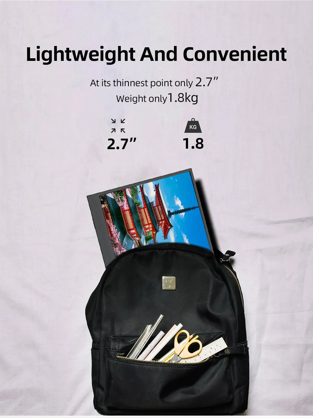 Built-in Mini HDMI port that plug-in test over 3000 times . The Leather shell bracket is made of durable PU leather exterior, a soft lining to keep your monitor safe.Type-C interface provides fast and stable data stream.